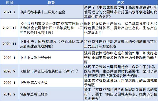 公园城市作为人、城、境、业高度和谐统一的现代化城市,是实现未来城市发展新境界,体现新发展理念的城市发展高级形态,也是新时代可持续发展城市建设的新模式。成都市贯彻可持续发展理念,在完善的政策扶持环境下,持续推动公园城市基础建设,不仅有效助力低碳减排,而且进一步刺激地方绿色产业发展,加速城市经济转型。成都作为我国低碳领域的引领城市,未来在“碳中和、碳达峰”领域上带动作用将越来越突出。